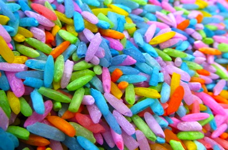 Supplies: white rice, Ziploc bags, food coloring, rubbing alcohol, plastic container, toys